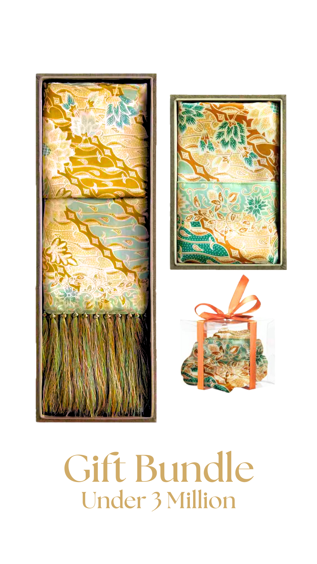 This elegant bundle under 3 million offers double the charm with two complete Batik Wayang sets—each featuring a scarf, shawl, and matching scrunchie in distinct motifs.